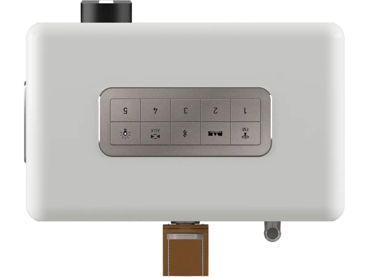 Das klavierlackveredelte Gehäusee und der edle Walnusskorpus machen überall eine gute Figur. Über die rückseitige Klinkenbuchse können externe Geräte angeschlossen werden, der seitliche USB-Port dient als Ladestation für Smartphone und Co. Zudem verfügt EASY über ein LED Nachtlicht, das bei der Orientierung in der Dunkelheit hilft.