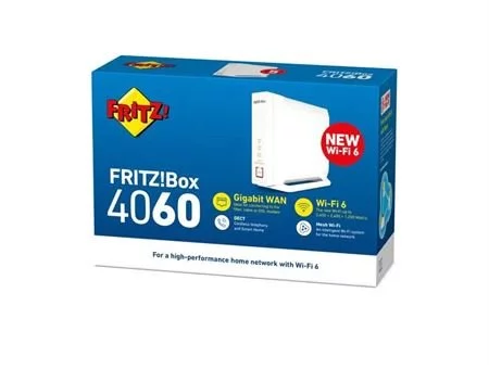 FRITZ!Box 4060 ist ein Triband-WLAN-Router mit 4 x 4 Wi-Fi 6 (WLAN AX)- Ausstattung inkl. Multi-User MIMO (MU-MIMO) und WLAN-Mesh-Funktion. Das neue Flaggschiffmodell der 40er-Serie besitzt erstmalig eine DECTBasisstation mit DECT ULE, wodurch Telefonie- und Smart-HomeFunktionen möglich sind. Des Weiteren sorgt ein 2.5-GBit/s-WAN-Port für eine sehr schnelle Internetanbindung an beispielsweise einem Kabel- oder Glasfasermodem. Der WAN-Port kann bei Bedarf auch als zusätzlicher 2.5- GBit/s-LAN-Port verwendet werden. Mit drei Gigabit-Ethernet-Anschlüssen können Computer oder netzwerkfähige Geräte mit Gigabit-Tempo ins Heimnetz eingebunden werden. Darüber hinaus sind in der FRITZ!Box 4060 eine VoIP-Telefonanlage sowie ein NAS mit einem schnellen USB-3.0- Anschluss integriert.