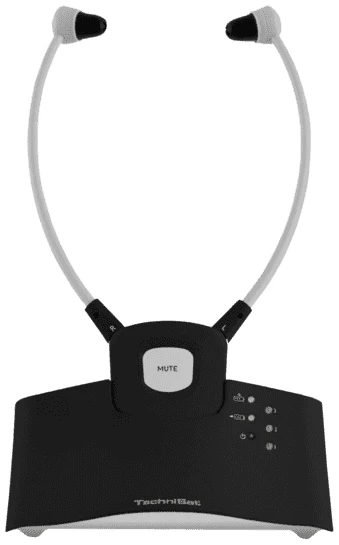 Die Bauweise ermöglicht eine bequeme und unkomplizierte Bedienung der wichtigsten Funktionen wie Lautstärkeregelung oder Ein- bzw. Ausschalten beim Tragen des Kopfhörers. Über den Mute-Knopf am Kopfhörer können Sie zudem den Ton der angeschlossenen Audioquelle ausblenden. So schalten Sie schnell und einfach vom Fernsehton auf Kommunikation um und unterhalten sich jederzeit mit anderen Personen im Raum. Hierbei wird gleichzeitig das integrierte Mikrofon des Kinnbügelhörers aktiviert, wodurch Geräusche und Gespräche aus der direkten Umgebung verstärkt werden.